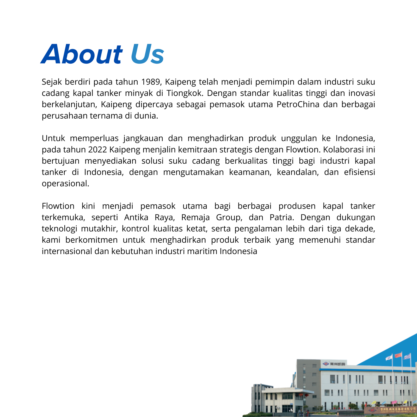 Didukung oleh pengalaman sejak 1989, KAIPENG dan Flowtion menghadirkan produk berkualitas tinggi, mudah diakses, dan layanan pelanggan terbaik di industri.